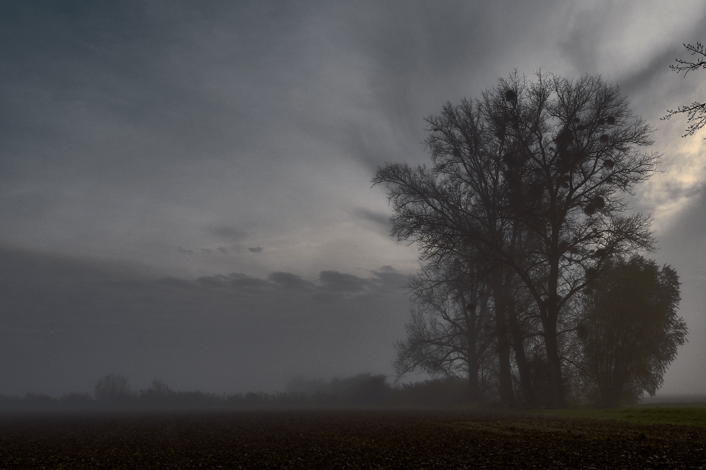 6. Dezember 2019 Der Herbst ist da Abendlicher Spaziergang bei Gernsheim, der Nebel spielt sein Spiel.