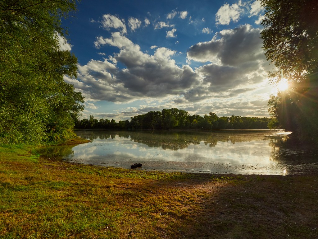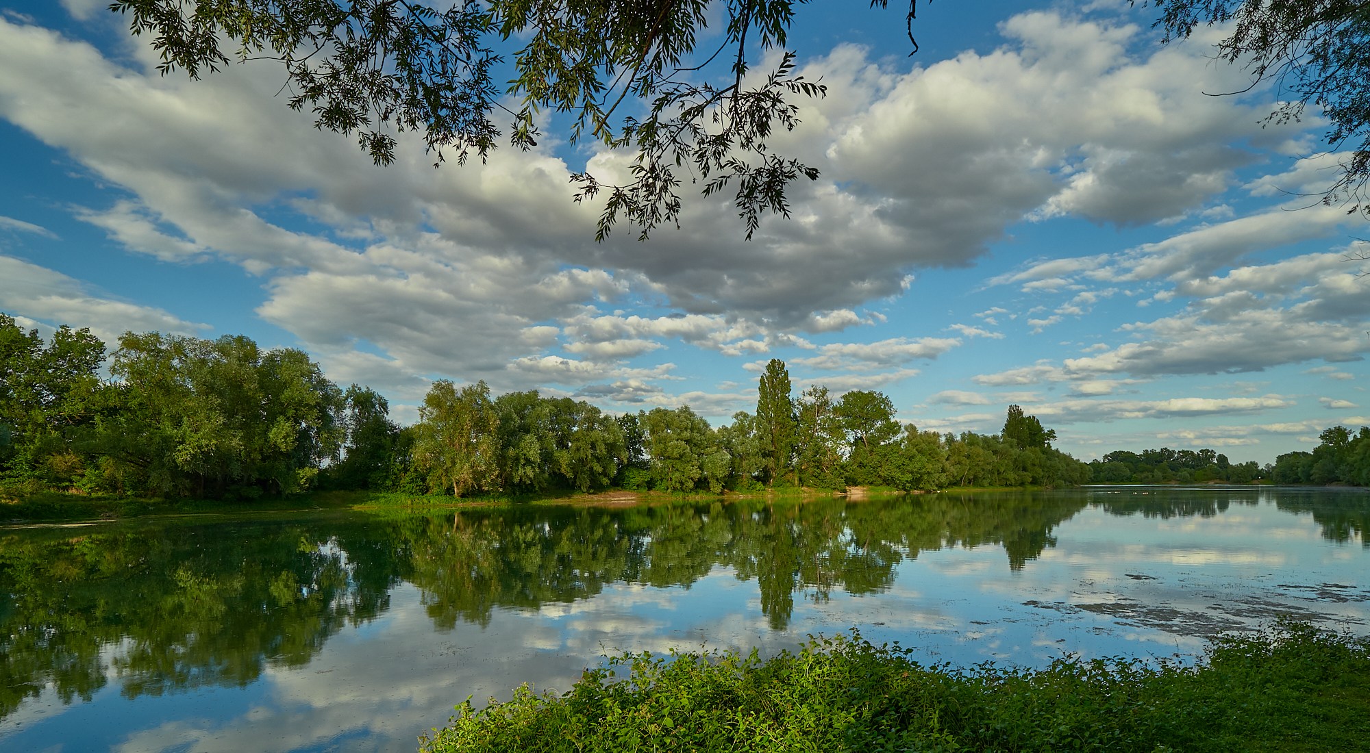 Konturen der Wolken, das klare Blau und die definierte Spiegelung, dazu trägt ein Polfilter bei.