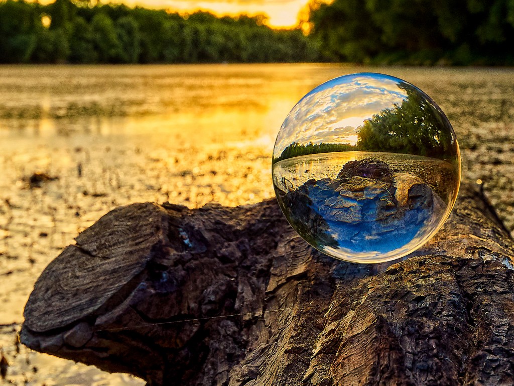 Hier kam eine 9cm Glaskugel zum Einsatz. Das Bild in der Kugel wurde dann in Photoshop gedreht, so das hier dies gefällig abgebildet wird.